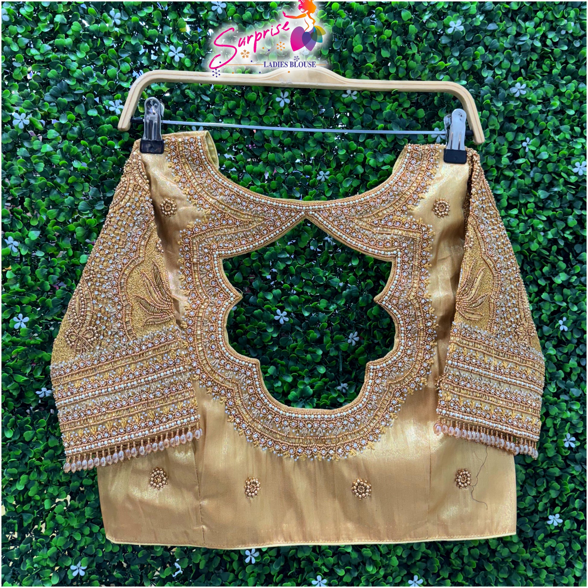 Bridal handwork readymade blouse gold color