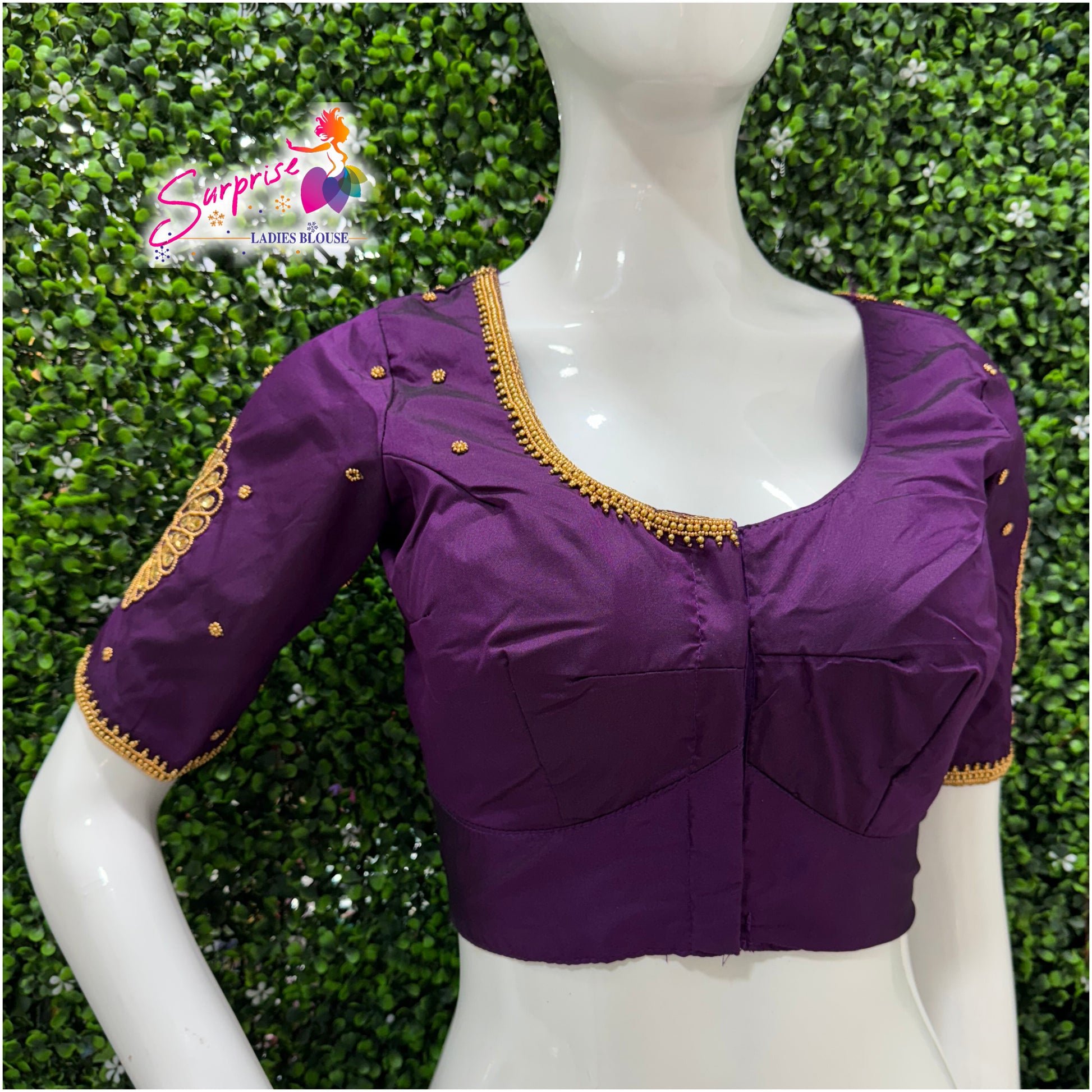 Designer handwork Ari work blouse purple color