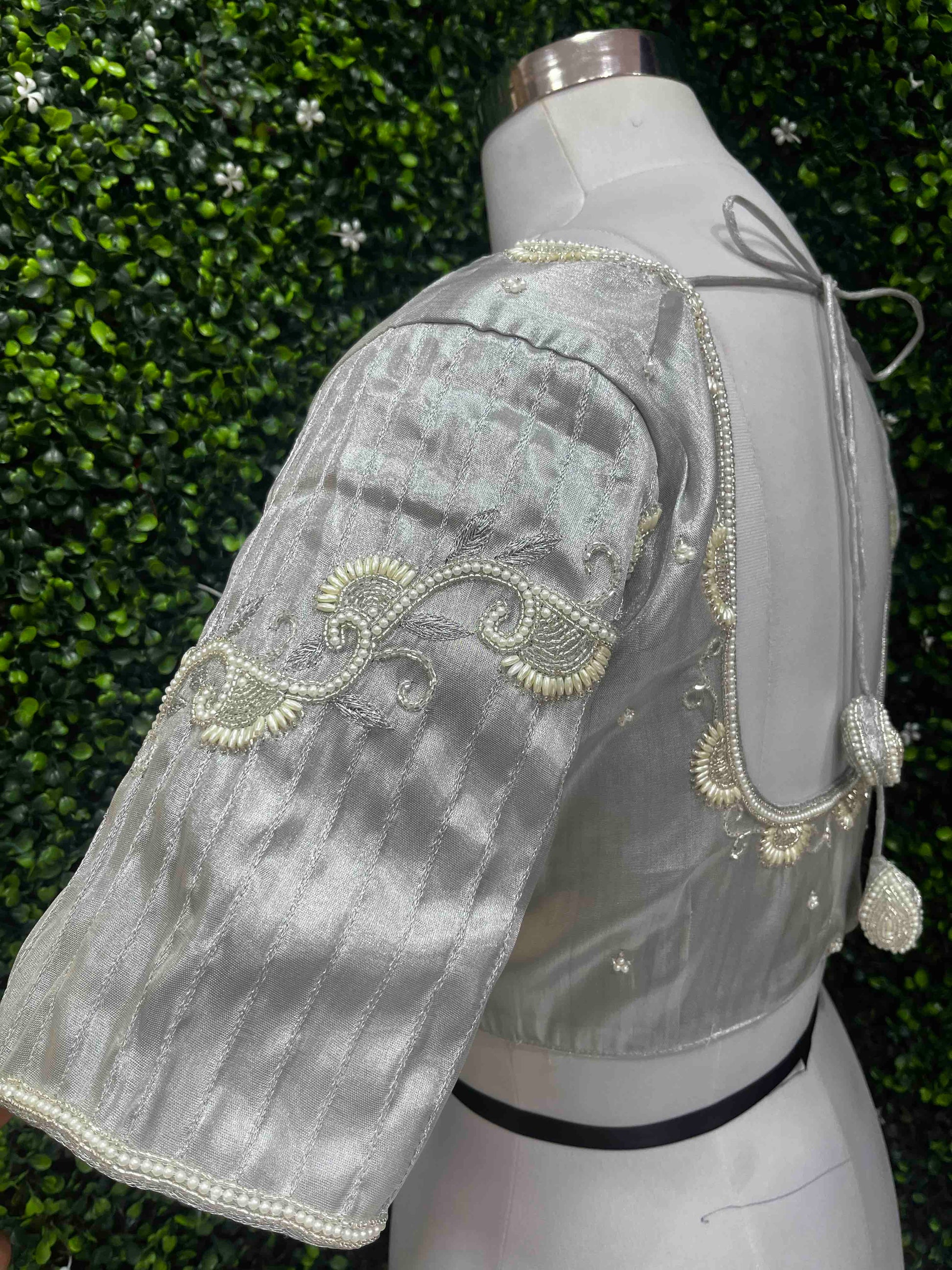 Designer Handwork Blouse Silver