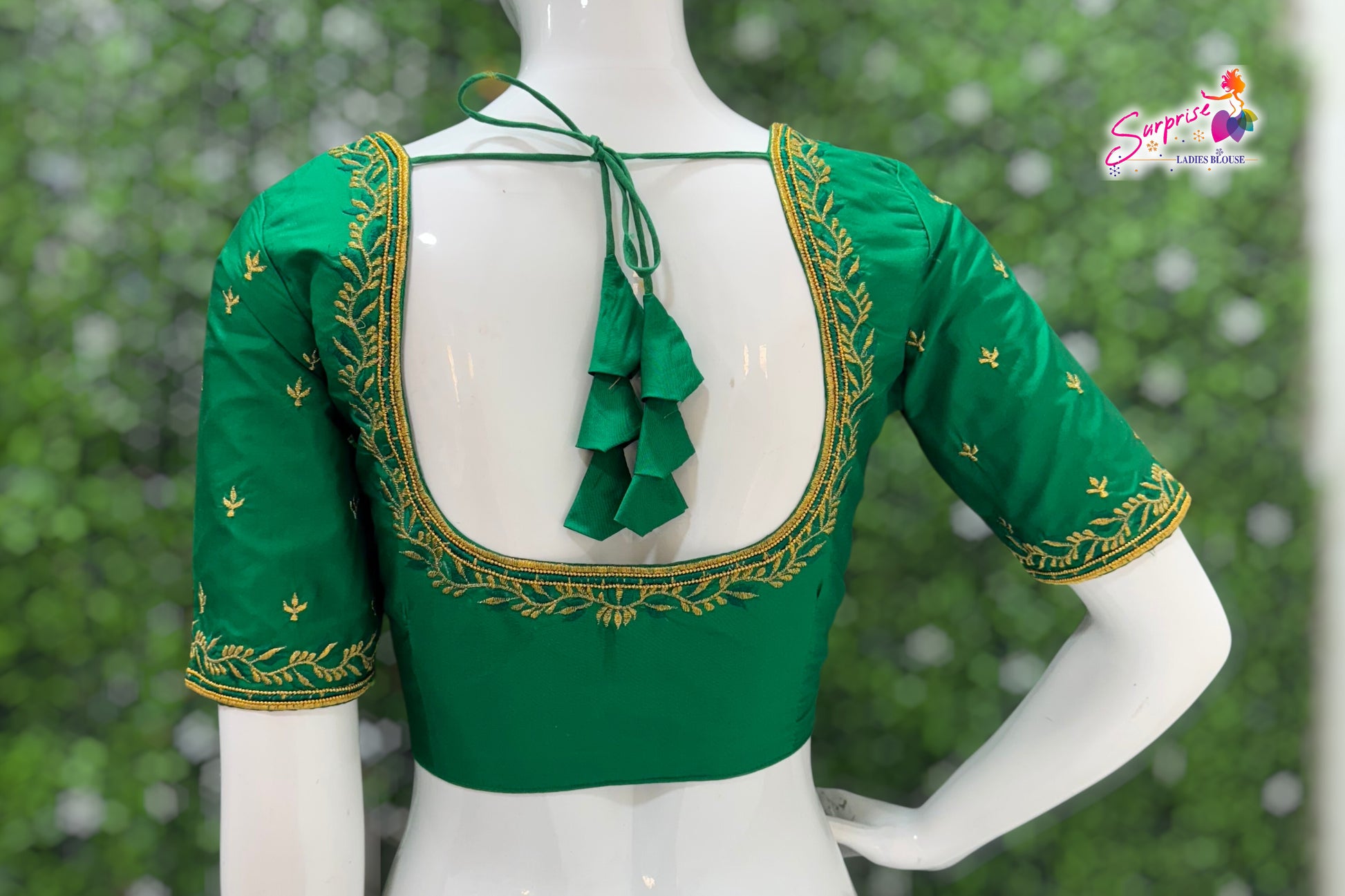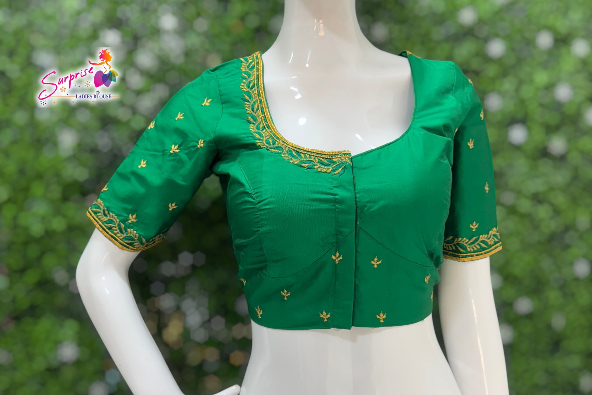 Machine work designer Readymade blouse Green color